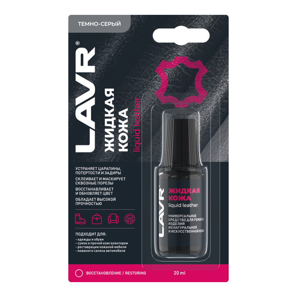 • LAVR Жидкая кожа Темно-серый, 20 мл Ln1793
